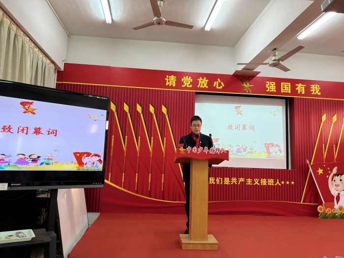 學(xué)校黨支部書(shū)記、校長(zhǎng)莫文杰為本屆少代會(huì)致辭,肯定了學(xué)校少先隊(duì)工作,并寄語(yǔ)少先隊(duì)員,勉勵(lì)隊(duì)員們從小樹(shù)立遠(yuǎn)大理想,錘煉優(yōu)秀品質(zhì)。