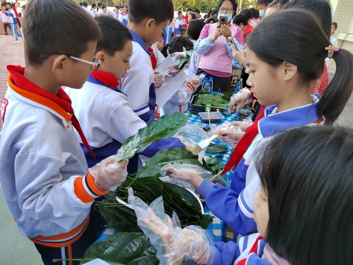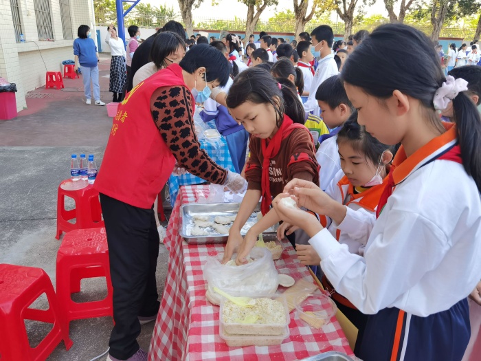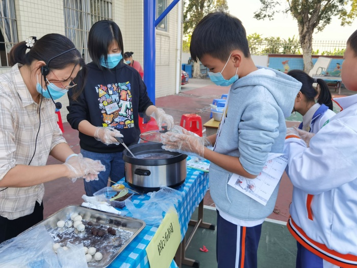 在傳統(tǒng)美食攤位,在老師們的帶領(lǐng)下,同學(xué)們將日常勞動(dòng)的收獲成果轉(zhuǎn)變成全校的傳統(tǒng)美食共享大會(huì)。瞧,同學(xué)們大展身手,化身“小廚神”,制作出了一道道色香味俱全的傳統(tǒng)美食,餃子、香湯圓、茶果、冰糖葫蘆、油角、艾餅、還有三角特色美食水煮生魚(yú)等等,可謂應(yīng)有盡有,令人三尺。