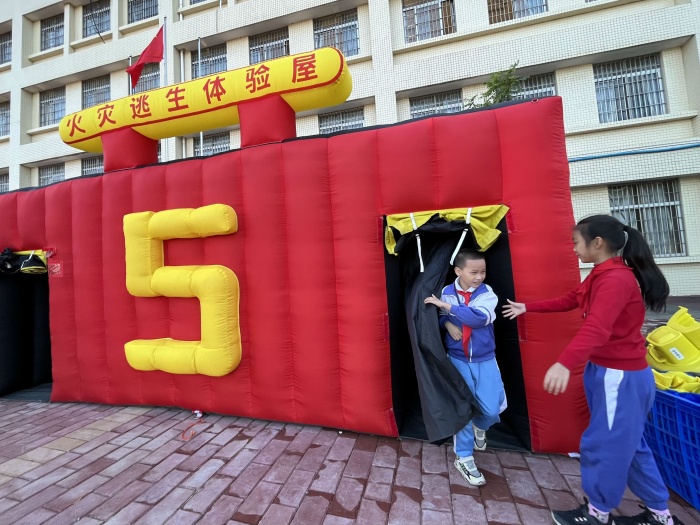 最后,同學(xué)們分組體驗(yàn)了由中山市住房和城鄉(xiāng)建設(shè)局主辦、廣東伍玖伍安全文化科技有限公司協(xié)辦的人防宣傳教育活動(dòng)。同學(xué)們通過(guò)安全大篷車學(xué)習(xí)消防安全、用電安全、防空安全知識(shí)等,體驗(yàn)了火災(zāi)逃生體驗(yàn)屋、消防用具體驗(yàn)等項(xiàng)目。同學(xué)們?cè)诰o張、嚴(yán)肅的氛圍中,掌握了各項(xiàng)安全救護(hù)技能。