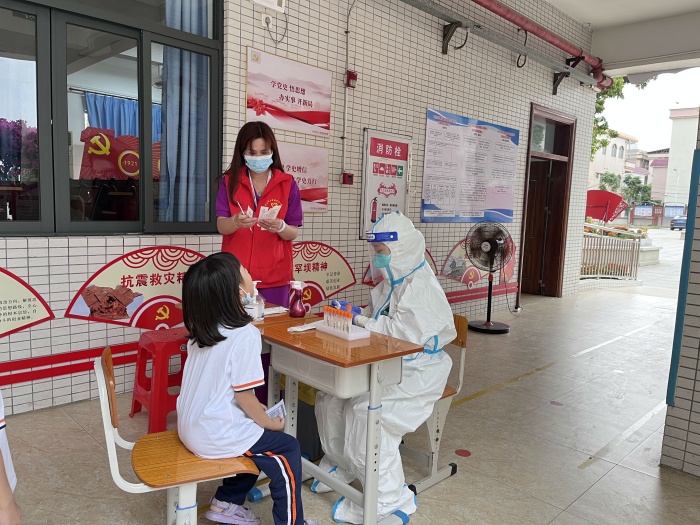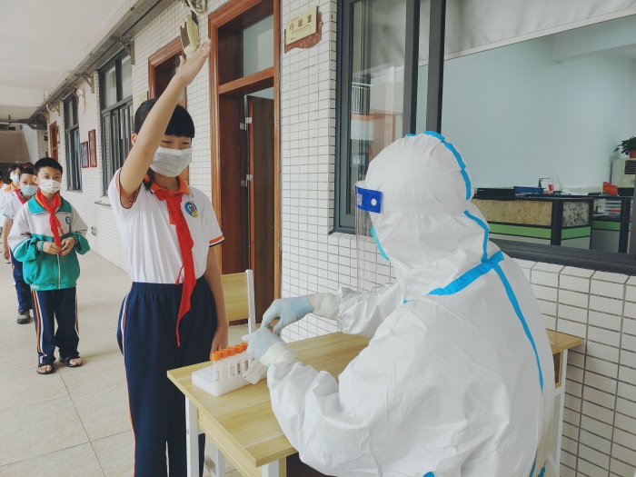 老師們全程跟進,孩子們井然有序地排隊等候檢測,取樣后很有禮貌地向醫(yī)務人員致謝,展現出沙小學子彬彬有禮的精神風貌。你們是棒棒噠!
