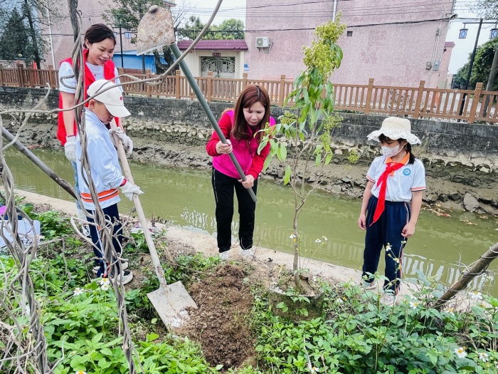 小手牽大手,護綠齊步走,在沙欄小學(xué)崔煥英校長帶領(lǐng)下,全體親子義工服務(wù)隊帶著滿滿的熱情和歡樂,紛紛拿起鐵鍬、小鏟,揮鍬挖坑、扶正填苗、填土踩實一起種下春日的第一棵小樹苗。隨后在專屬寄語卡片上寫上自己的名字,給小樹掛上,希望能與與小樹共同茁壯成長,隊員們通過親身實踐體驗到了勞動的歡樂,培養(yǎng)了動手能力和團隊協(xié)作能力,現(xiàn)場一片熱火朝天的勞動景象,在這浪漫春光里散發(fā)著青春朝氣。