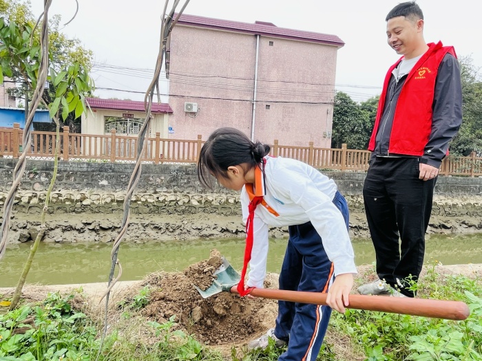 正值一年一度的植樹節(jié),為了在少先隊員們的心里播撒下綠色的希望,讓他們親身體驗保護自然的樂趣,感受美化環(huán)境的意義,獲得更多親近春天的快樂體驗,3月12日,三角鎮(zhèn)沙欄小學(xué)巾幗筑夢志愿服務(wù)隊、少工委聯(lián)合沙欄村關(guān)工委開展親子植樹志愿活動。