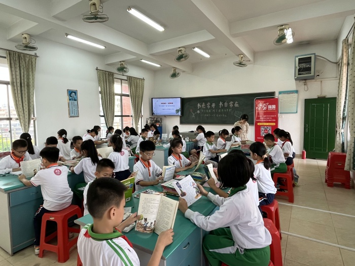 書卷常開,書香常在。學(xué)習(xí)強(qiáng)國線下閱讀空間為孩子們搭建了互動與交流的陣地,“學(xué)習(xí)強(qiáng)國”學(xué)習(xí)平臺上海量的學(xué)習(xí)資源不僅能幫助老師更好地開展教育教學(xué)工作,還能助力學(xué)校打造一班一亮點(diǎn)、一校一品牌的特色班級和特色校園文化創(chuàng)建工作。下一步,三角鎮(zhèn)中心小學(xué)將繼續(xù)增強(qiáng)“學(xué)習(xí)強(qiáng)國”學(xué)習(xí)平臺優(yōu)質(zhì)資源與線下閱讀的有機(jī)融合,打造屬于三角鎮(zhèn)中心小學(xué)特有的儒家文化書香校園氛圍。