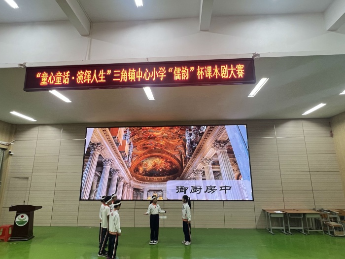 同學(xué)們精心準(zhǔn)備排演,上演了《陶罐和鐵罐》《白雪公主》《狐假虎威》等精彩劇目,傲慢的鐵罐在御廚房里對(duì)同伴們指手畫腳,讓人恨得牙癢癢;美麗的皇后對(duì)著魔鏡計(jì)劃著她那邪惡的計(jì)謀;狡猾的狐貍在老虎面前洋洋得意……將經(jīng)典的童話故事從課本搬上舞臺(tái),學(xué)生們的精彩演出,贏得了臺(tái)下觀眾陣陣掌聲??粗枧_(tái)上一個(gè)個(gè)鮮活的人物,臺(tái)下的同學(xué)們時(shí)而屏息凝神,時(shí)而開懷大笑,時(shí)而掌聲雷動(dòng),無不沉浸在每場(chǎng)演出的特有氛圍中。