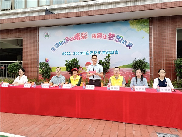 生命因運(yùn)動(dòng)精彩,體育讓夢(mèng)想成真。為深入貫徹落實(shí)《學(xué)校體育工作條例》,增強(qiáng)學(xué)生的身體素質(zhì),促進(jìn)學(xué)生全面發(fā)展,4月14日,三鄉(xiāng)鎮(zhèn)白石環(huán)小學(xué)舉行2022-2023年體育節(jié)田徑運(yùn)動(dòng)會(huì)。三鄉(xiāng)鎮(zhèn)教育和體育事務(wù)中心副主任馬駿、白石環(huán)小學(xué)家委會(huì)會(huì)長(zhǎng)閆洪鴿、白石環(huán)小學(xué)家委會(huì)組織部長(zhǎng)林劍波應(yīng)邀參加了運(yùn)動(dòng)會(huì)開(kāi)幕儀式并在主席臺(tái)就座。