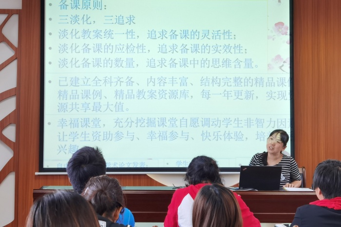 首先是語文科組長李輝燕老師對語文科組在這次素質(zhì)教育檢查中的表現(xiàn)進行一個反饋和小結(jié)。李輝燕老師分享了四個字:努力和合作。每一個語文老師在這次檢查中,都卯足了勁。在每一次的放學(xué)后,在每一次的課間,老師們抓住零碎的時間備課,商討上課的每一個環(huán)節(jié);在一次次的試教、推翻、修改中不斷完善教學(xué)設(shè)計。備課過程中的點點滴滴,體現(xiàn)的是語文科組老師做事的認真,對專業(yè)的精益求精。團隊之間的相互幫助,共同合作,促進了老師們自身的發(fā)展。正是他們不平凡的努力和相互合作讓課堂變得更加精彩。反思這次素質(zhì)教育檢查,李輝燕老師還思考了如何做會更有效:1、善找名師;2、會找資源;3、閱讀更多書籍;4、做生活的有心人,積少成多,聚沙成塔。