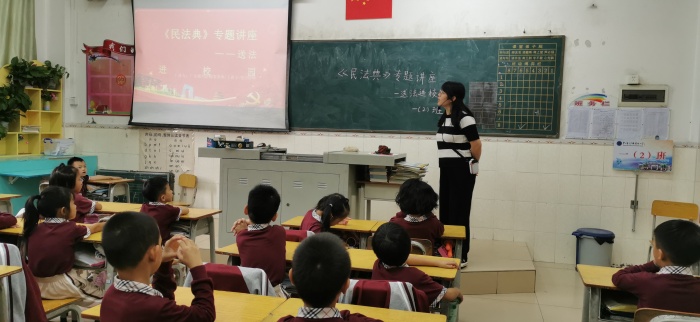 為幫助青少年樹立良好的法治觀念,增強(qiáng)青少年的法治安全意識(shí),2020年10月28日上午11:20,新圩小學(xué)誠邀廣東銘興律師事務(wù)所陳路芳律師來到學(xué)校,為全體師生開展《民法典》普法宣講活動(dòng),其中四年級(jí)學(xué)生到階梯室現(xiàn)場(chǎng)聽課。