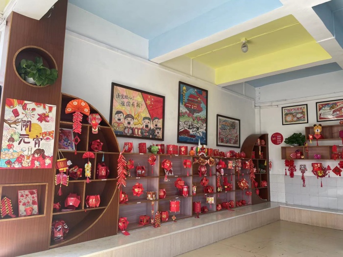 2月15日早上,學校進行了元宵節(jié)相關手工作品展示。同學們在家長的陪同下利用各種材料制作而成的燈籠、金魚、虎頭飾品等各具特色,五年級同學手繪的海報也非常特別。課間,同學們紛紛駐足觀賞。