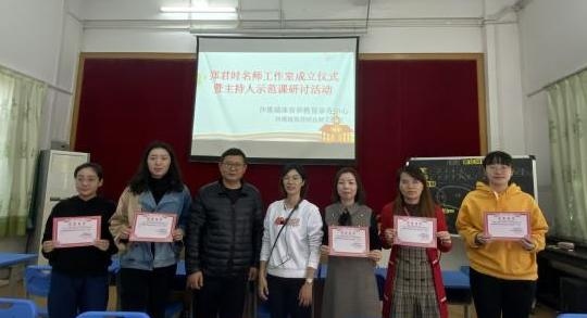 2021年12月10日上午,沙溪鎮(zhèn)鄭君時名師工作室成立儀式暨主持人示范課研討活動在沙溪鎮(zhèn)龍頭環(huán)學(xué)校舉行。沙溪鎮(zhèn)數(shù)學(xué)名教師徐烈海及其工作室成員、鄭君時數(shù)學(xué)名師工作室成員、龍頭環(huán)學(xué)校數(shù)學(xué)科組全體成員參加了本次活動,工作室成員黃淑娟老師擔(dān)任主持人。