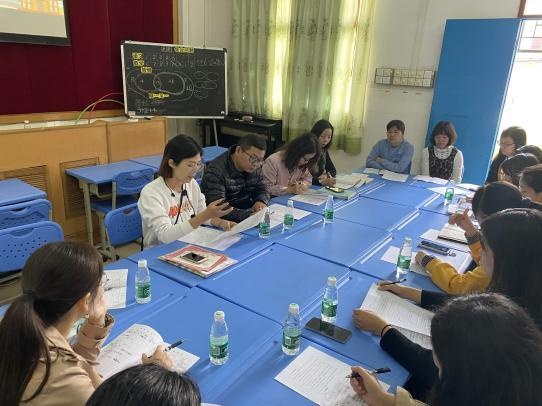 研討開始了,鄭老師首先自己分析了本節(jié)課的教學(xué)思路,工作室的成員和其他老師們紛紛進(jìn)行了點(diǎn)評。沙溪鎮(zhèn)數(shù)學(xué)名教師徐烈海主任指出本節(jié)課的教學(xué)思路層層遞進(jìn),上課內(nèi)容既有深度又有廣度,老師引導(dǎo)學(xué)生到位不越位,引導(dǎo)學(xué)生猜想多種結(jié)果并得到體驗(yàn),還原了數(shù)學(xué)問題的現(xiàn)實(shí)情境。鄭老師的課非常有激情,注重細(xì)節(jié)的處理,例如將圈圈“請”到黑板上等這些課堂語言細(xì)節(jié)。