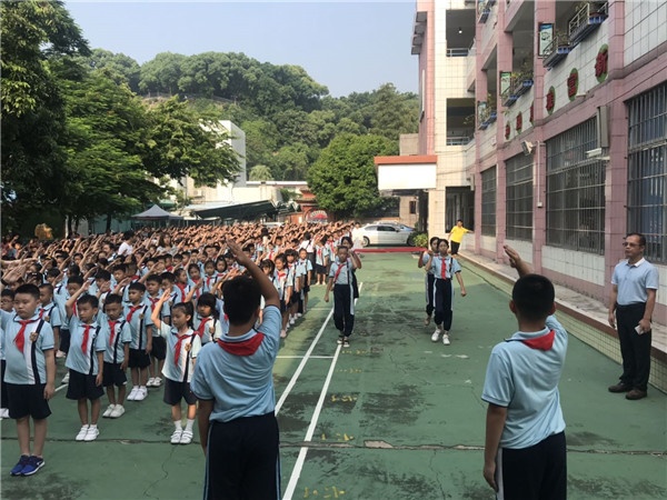 9月1日上午,龍頭環(huán)學(xué)校召開(kāi)了“加強(qiáng)文化引領(lǐng),打造新優(yōu)質(zhì)學(xué)校”為主題的開(kāi)學(xué)典禮。典禮上,莊嚴(yán)的升旗禮儀式后,吳發(fā)志校長(zhǎng)代表全體師生,歡迎一年級(jí)小朋友,祝賀他們正式成為一名小學(xué)生。吳校長(zhǎng)還對(duì)暑期創(chuàng)建文明城市的工作進(jìn)行匯報(bào),美德是立身之本,文明是城市之魂,要求全體師生尊紀(jì)守法,做一個(gè)文明守禮的好公民,讓文明之花開(kāi)遍龍頭環(huán)校園。