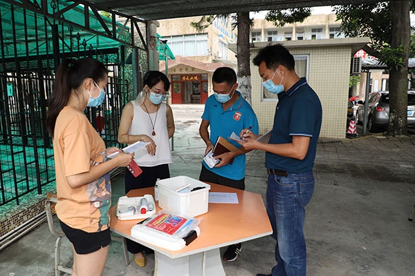 檢查小組主動接受體溫檢測、查閱粵康碼、行程卡等入校流程,分線一對一,有針對性地對濠涌小學(xué)新型冠狀病毒疫情防控措施落實(shí)情況、組織保障和制度預(yù)案制定、全員防疫培訓(xùn)及演練、信息排查上報、物資與后勤保障情況、臨時留觀區(qū)準(zhǔn)備、全面清潔消毒、校園安全管理、師生心理防護(hù)與家校聯(lián)系等各項工作進(jìn)行全面細(xì)致檢查。通過聽取匯報、查閱資料、現(xiàn)場查看等方式監(jiān)督檢查濠涌小學(xué)防控工作的具體落實(shí)情況。