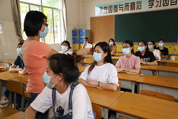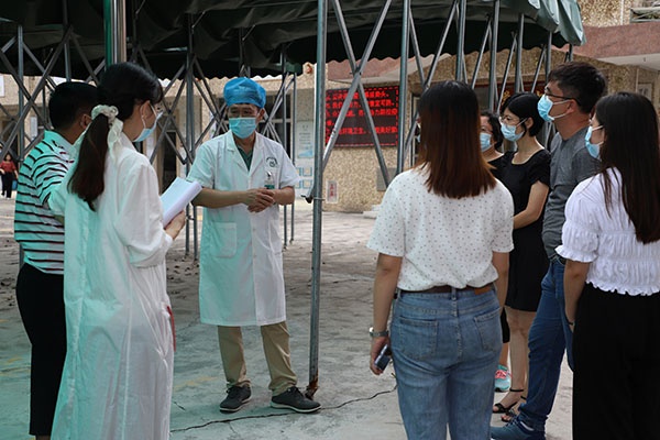 8月29日上午,檢查小組如期而至,校長辜鴻雁率領(lǐng)防控工作領(lǐng)導(dǎo)小組成員于校門口迎接檢查小組。