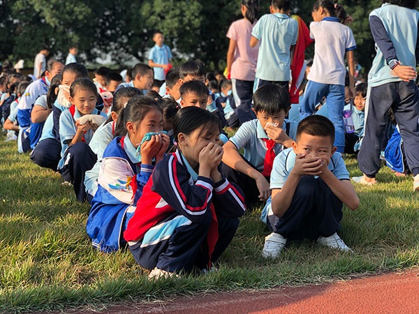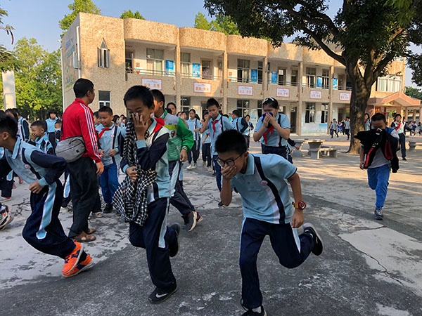 演練開始前,各班主任再一次強調演練重點,全校師生從接到指令,到撤離到指定安全地帶,只用了不到2分鐘。警報響起后,同學們快速地離開課室,以手帕、毛巾或者衣物遮掩口鼻,俯身前進,途中高年級注意避讓、照顧低年級的同學。整個過程緊張有序、沒有出現(xiàn)擁擠摔倒現(xiàn)象,同學們能按照要求認真對待,安全防范意識強烈。老師組織到位,保障有力,保證了這次演練的成功。