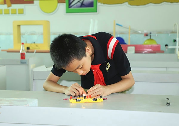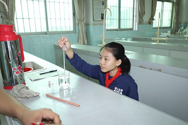 考核試題共有六道,分別是測量不規(guī)則石塊的體積、測量液體的溫度、電路的連接、區(qū)分水白酒白醋、聲音的產(chǎn)生以及讓氣球膨脹起來。考前,六年級科學老師在科組長黃孔佳老師的帶領(lǐng)下,對學生作了細致的輔導,讓學生分組背誦熟悉實驗操作,并通過反復實操練習提高學生的操作準確性以及熟練程度。
