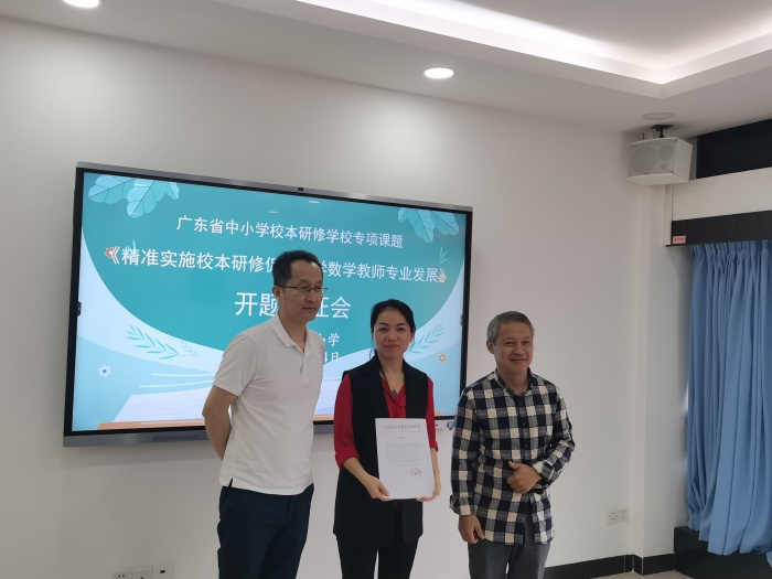 為精準(zhǔn)把握課題研究方向和實施辦法,切實提高課題研究成效,2022年11月24日上午,中山市實驗小學(xué)在名師工作室舉行由數(shù)學(xué)科組長楊英老師主持的廣東省中小學(xué)校本研修學(xué)校專項課題《精準(zhǔn)實施校本研修促進(jìn)小學(xué)數(shù)學(xué)教師專業(yè)發(fā)展》的開題論證會。中山市教育教學(xué)研究室科研部馮繼有部長、小學(xué)數(shù)學(xué)教研員劉燕老師和中山市教師發(fā)展中心趙龍山教授、中山市實驗小學(xué)徐銘侃校長以及數(shù)學(xué)科組教師代表出席參加會議,會議由中山市實驗小學(xué)教務(wù)處肖振漢主任主持。