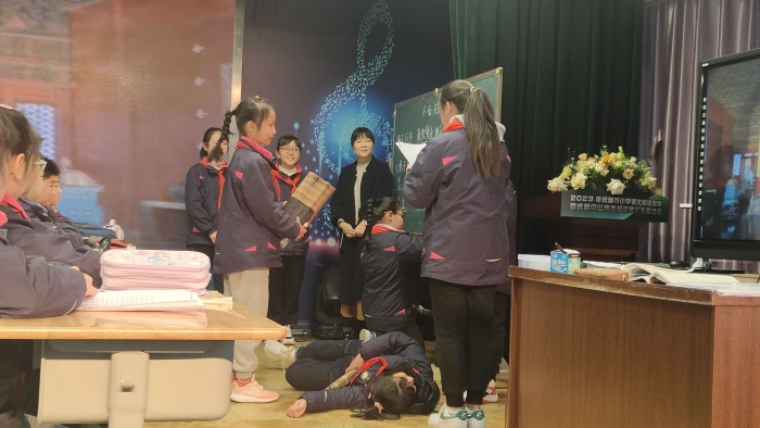 第一節(jié)課是成都市高新區(qū)芳草小學(xué)王鴻老師執(zhí)教的五年級下冊《不怕死的太史》,王老師通過文學(xué)性閱讀任務(wù)群策略,探究式學(xué)習(xí)方式,采用抓關(guān)鍵詞批注、查一查背景、演一演故事,帶領(lǐng)孩子們一起展示單篇閱讀教學(xué)方法。
