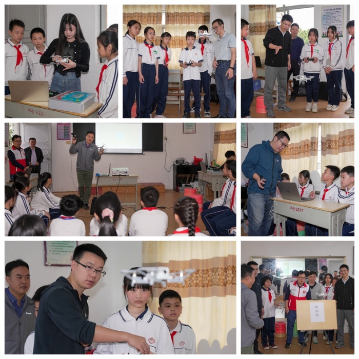 中山小學(xué)信息技術(shù)教研基地項(xiàng)目的老師們?yōu)轲埰娇h高堂鎮(zhèn)中心小學(xué)的孩子們帶來(lái)了一場(chǎng)科技感滿(mǎn)滿(mǎn)的“無(wú)人機(jī)編程課程”?;顒?dòng)伊始,中山市東區(qū)水云軒小學(xué)的吳錦開(kāi)主任為孩子們?cè)敿?xì)講授了編程無(wú)人機(jī)的結(jié)構(gòu)、使用方法、注意事項(xiàng)等內(nèi)容。在各組指導(dǎo)老師們的帶領(lǐng)下,學(xué)生通過(guò)學(xué)習(xí)并編程,使無(wú)人機(jī)完成了起降、環(huán)繞、巡航等任務(wù)。一雙雙好奇的眼睛、一句句由衷的驚嘆,將整節(jié)課堂氣氛推向高潮。課程結(jié)束后孩子們依依不舍的向老師們發(fā)出了“老師,我們希望你們?cè)賮?lái)一次!”的誠(chéng)摯邀請(qǐng)。