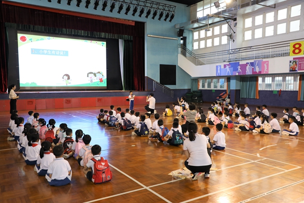 小學的體驗活動深深地吸引著機關三幼的小朋友,他們坐得端端正正,聽得聚精會神。在欣賞石岐中心小學宣傳片《紅棉的模樣》時,還跟隨鄒老師一起律動舞蹈,將活動推向高潮。