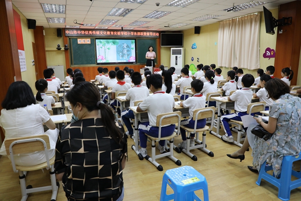5月20日下午,中山市中華優(yōu)秀傳統(tǒng)文化教育東部片區(qū)聯(lián)盟督導組專家晏利紅副校長、陳玉萍組長、鄭亞文主任、趙雪爽老師、王春宇老師以及兄弟學校的多位老師,蒞臨中山市石岐中心小學進行傳統(tǒng)文化教育工作指導。石岐中心小學王文儒副校長、鄭秀明主任及課題組骨干教師全程參加本次活動。