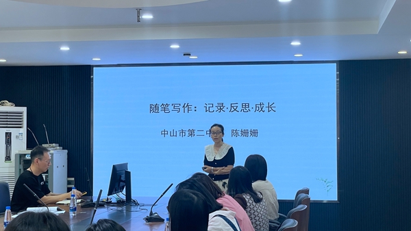 研修活動(dòng)分為兩個(gè)部分。首先陳姍姍老師進(jìn)行《記錄·反思·成長(zhǎng)》為主題的隨筆撰寫專題講座。陳老師以自己隨筆撰寫的經(jīng)歷深入淺出地講解了隨筆撰寫的方法和技巧。七十多頁的課件,細(xì)致入微地講解了隨筆寫作的意義、困惑和成效,讓研修班成員們甚是佩服,同時(shí)也激發(fā)了大家堅(jiān)持隨筆寫作的熱情和進(jìn)行教育研究的熱忱。