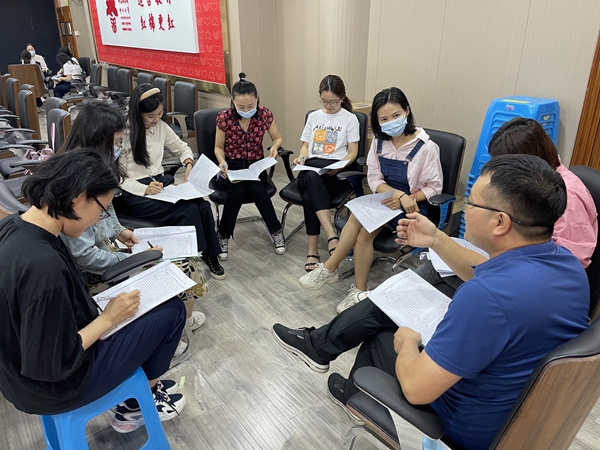 活動(dòng)的第二部分是分小組進(jìn)行課題申報(bào)書的研磨。郭躍輝老師曾在今年的3月18日給研修班成員做了《教育科研課題選題與申報(bào)》專題講座,激發(fā)了研修班成員對(duì)課題申報(bào)的寫作訓(xùn)練熱情。這次,小組成員在專家指導(dǎo)老師的帶領(lǐng)下尋找問題,消除困惑,碰撞思維。研磨活動(dòng)結(jié)束后成員紛紛表示自己對(duì)課題有了新的想法,掌握了一定的撰寫技巧。