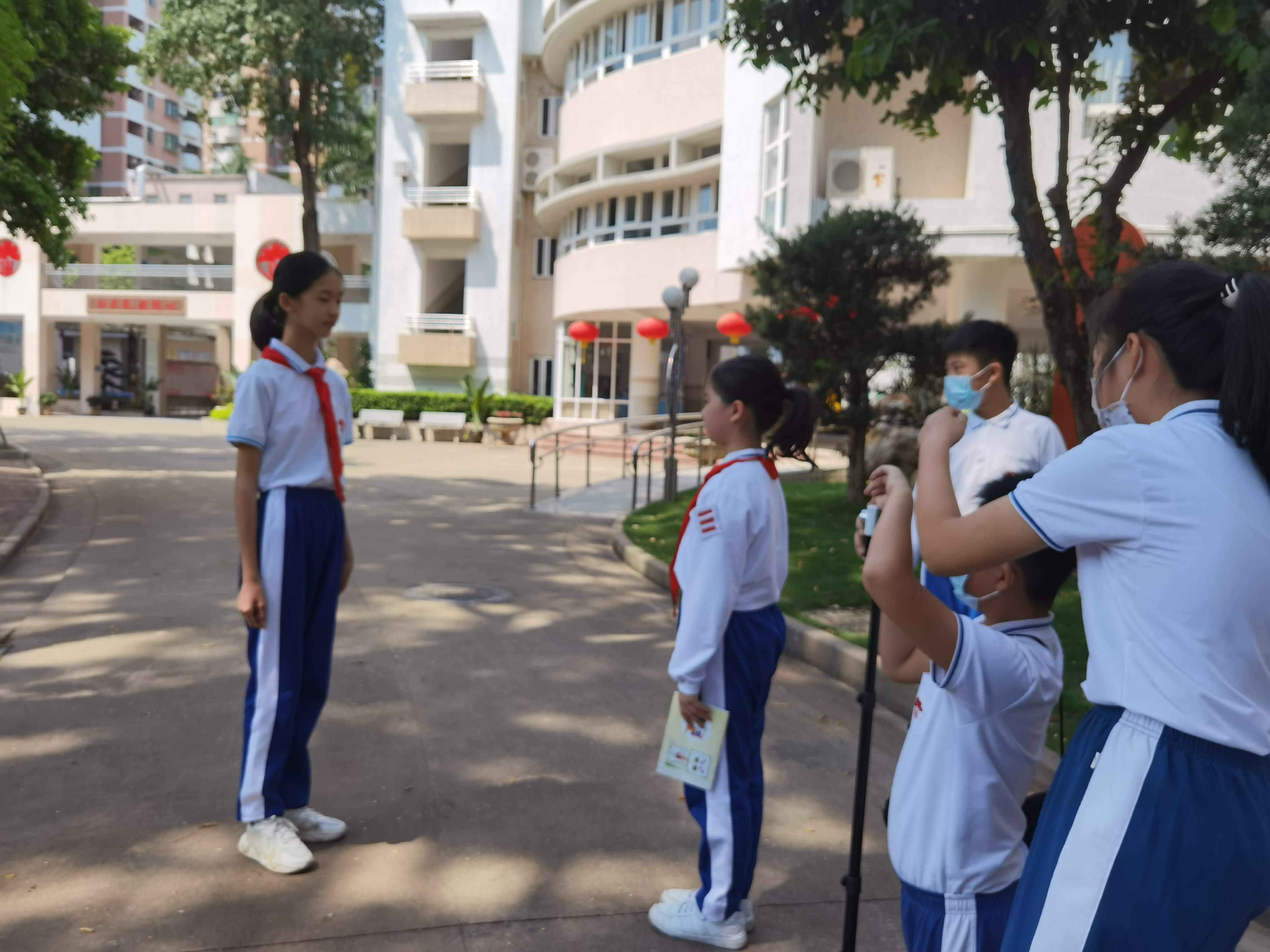 由于疫情防控要求,原計(jì)劃的培訓(xùn)無法進(jìn)行,學(xué)校少工委動(dòng)員紅棉影視社團(tuán)隊(duì)員楊瀚哲、梁曦文,學(xué)??傟?duì)委王映歡、陳芊聿,六(1)中隊(duì)的孫浩誠(chéng)等同學(xué)一起拍攝“紅領(lǐng)巾獎(jiǎng)?wù)隆睜?zhēng)章講解視頻,幫助各中隊(duì)更好地推進(jìn)爭(zhēng)章活動(dòng)。