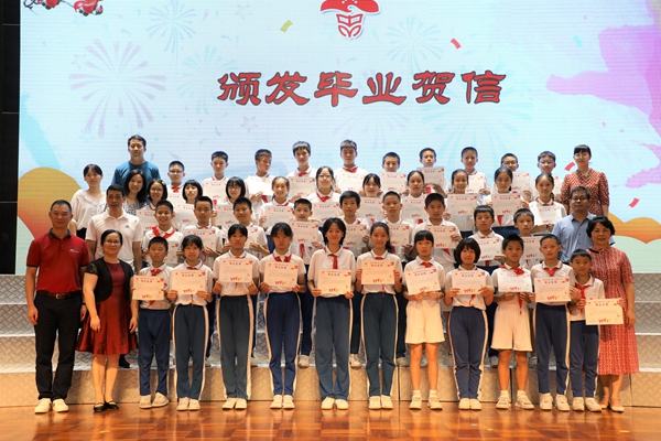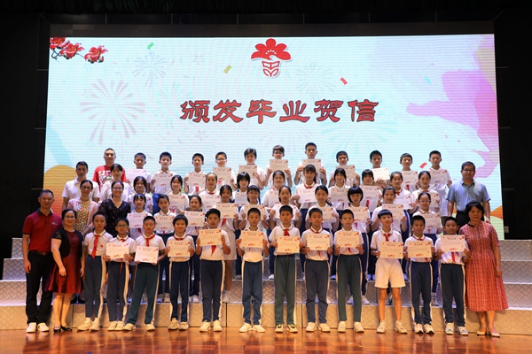 同學(xué)的們即興演唱將畢業(yè)典禮推向了高潮。畢業(yè)典禮在頒發(fā)畢業(yè)賀信和熟悉中的《木棉之歌》音樂(lè)聲中落下帷幕,為學(xué)生六年的小學(xué)生活畫上圓滿的句號(hào)。相信石岐中心小學(xué)的每個(gè)畢業(yè)生都會(huì)帶著母校的誠(chéng)摯的祝福,師長(zhǎng)的諄諄教誨,去擁抱更美好的明天。