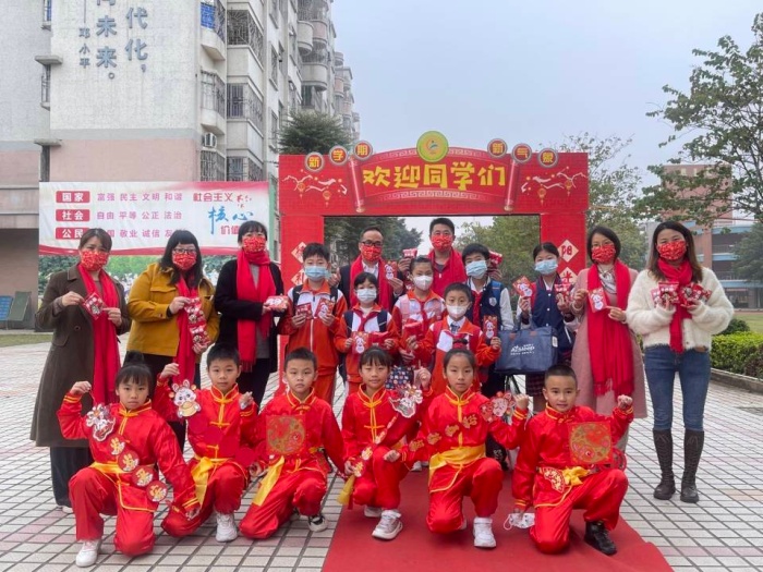 伴隨著新春佳節(jié)的歡聲笑語,孩子們驚喜地看到了帶著新年禮物在校門口迎接他們的全體行政領(lǐng)導(dǎo)和六位東方娃。孩子們手里拿著兔??ê透L牵┻^開學(xué)門,走在紅地毯,心里美滋滋。在這種溫馨的氛圍之下,學(xué)生們以良好的精神面貌,在操場上參加開學(xué)典禮。