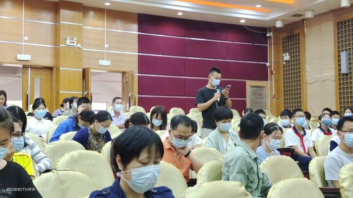 演練中,朱漢業(yè)校長(zhǎng)接上級(jí)疾控部門來電,發(fā)現(xiàn)中山市坦洲實(shí)驗(yàn)中學(xué)有一名核酸檢測(cè)異常學(xué)生。學(xué)校疫情防控領(lǐng)導(dǎo)小組立即啟動(dòng)封控管理處置預(yù)案,并向鎮(zhèn)校園疫情防控專班匯報(bào)。