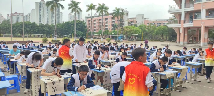 3月20日下午,中山市坦洲實驗中學(xué)第十九屆藝術(shù)節(jié)書法現(xiàn)場比賽,在學(xué)校廣場成功舉行。該校副校長楊建萍、德育處主任劉明、團(tuán)委書記黃浪靜、校辦公室副主任全亞玲、美術(shù)科組長陳東輝老師以及袁玲玲老師等有關(guān)領(lǐng)導(dǎo)和教師出席并指導(dǎo)了本次比賽,活動由該校團(tuán)委主辦,由美術(shù)組承辦。