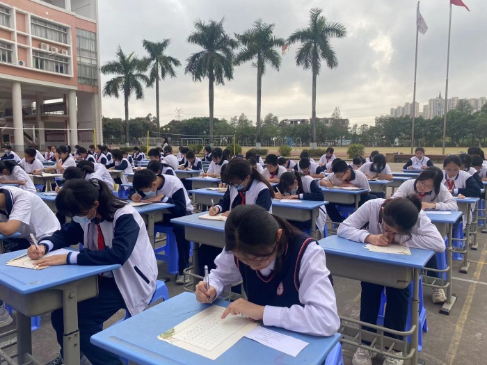 坦洲實驗中學(xué)高度重視本次書法比賽,希望以此為新的起點,傳承中國悠久的書法文化,加深同學(xué)們對書法藝術(shù)的了解,培養(yǎng)學(xué)生熱愛書法藝術(shù)的興趣。開賽前,楊建萍副校長指出:“書法藝術(shù)源遠(yuǎn)流長,硬筆書法更是一門深刻、古老、實用的藝術(shù),是中國傳統(tǒng)文化的典型代表。愿大家以本次書法大賽為契機(jī),樹立規(guī)范書寫的意識,以提高漢字書寫水平為己任,將中華民族傳統(tǒng)文化發(fā)揚光大!”