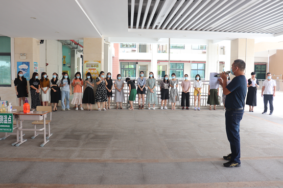總務(wù)處負(fù)責(zé)人李少基老師介紹了本次演練發(fā)現(xiàn)病例、及時(shí)報(bào)告、啟動(dòng)預(yù)案、轉(zhuǎn)運(yùn)病例、隔離觀察、聯(lián)防聯(lián)控等環(huán)節(jié)和安全防控工作規(guī)范與流程。本次演練場景為一名從高風(fēng)險(xiǎn)地區(qū)返回學(xué)生,經(jīng)集合隔離14天后無不適返校,返校2天后檢測核酸復(fù)陽?!扒闆r”發(fā)生后,學(xué)校及時(shí)報(bào)告,立即隔離,運(yùn)送病例到定點(diǎn)隔離場所,班主任及時(shí)和家長溝通,有序運(yùn)轉(zhuǎn)密切接觸者到指定隔離點(diǎn)隔離,并開展流調(diào)、采樣、消殺等工作。最后,李少基老師作了活動(dòng)小結(jié)。