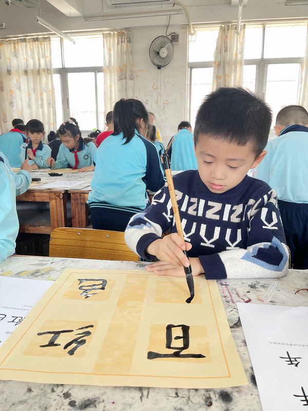 12月14日下午,七村小學舉行了以“我在黨旗下成長”為主題的現(xiàn)場毛筆書法大賽,旨在激勵全體少先隊員從心底自覺地煥發(fā)出愛黨愛國的情懷,各班挑選優(yōu)秀的“小小書法家”,代表本班在年級組進行角逐。在比賽中,選手們都全神貫注于作品的書寫中,一絲不茍,點橫撇捺,工整美觀,盡顯筆鋒,盡力表現(xiàn)出自己的最高水平,一張張紙上呈現(xiàn)出他們深厚的書寫功底。