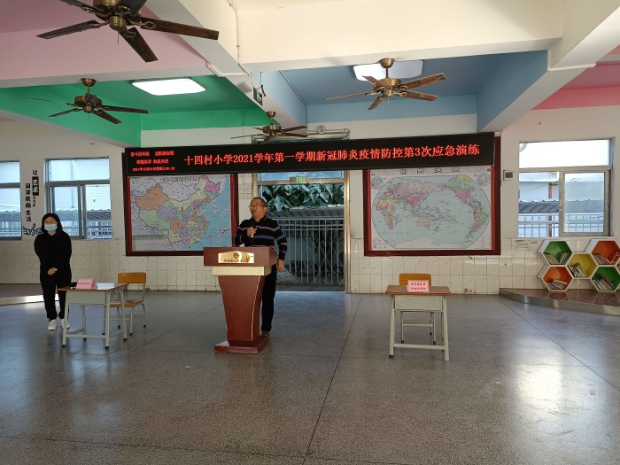 本次演練由馬林校長(zhǎng)指導(dǎo)、李秋嬋主席統(tǒng)籌組織,全校師生共同參與。演練的主要內(nèi)容是學(xué)校在日常教學(xué)情況下某班級(jí)出現(xiàn)發(fā)熱學(xué)生,校醫(yī)對(duì)不舒服學(xué)生監(jiān)測(cè)體溫時(shí),發(fā)現(xiàn)402班A學(xué)生體溫37.8°C,同時(shí)了解到A學(xué)生曾經(jīng)接觸過(guò)來(lái)自中高風(fēng)險(xiǎn)地區(qū)的人員。學(xué)校立即上報(bào)爭(zhēng)取指導(dǎo)和支持,鎮(zhèn)指揮部啟動(dòng)了應(yīng)急預(yù)案,協(xié)調(diào)各相關(guān)部門(mén)實(shí)施積極有效的防控措施,快速轉(zhuǎn)診、篩查、診斷和治療疑似病例,迅速排查和確定密切接觸人員并實(shí)施隔離醫(yī)學(xué)觀察,組織對(duì)學(xué)生相關(guān)生活學(xué)習(xí)場(chǎng)所實(shí)施終末消毒,開(kāi)展師生健康教育和心理輔導(dǎo)。
