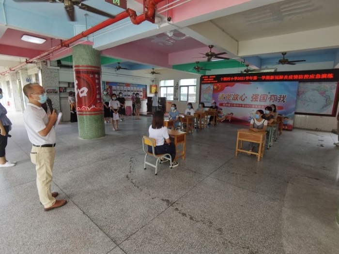 隨著2021年秋季新學(xué)期開學(xué),學(xué)校迎來師生回歸。為全面做好疫情防控工作,進(jìn)一步提高疫情防范和處置能力,熟練掌握學(xué)校疫情防控工作流程。9月7日,坦洲鎮(zhèn)十四村小學(xué)在校內(nèi)舉行返?!靶鹿诜窝追揽亍敝攸c(diǎn)環(huán)節(jié)疫情防控演練。