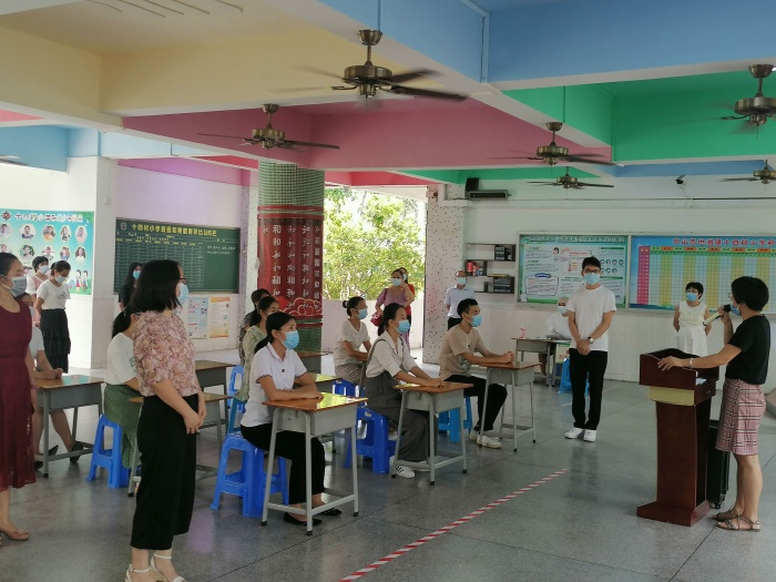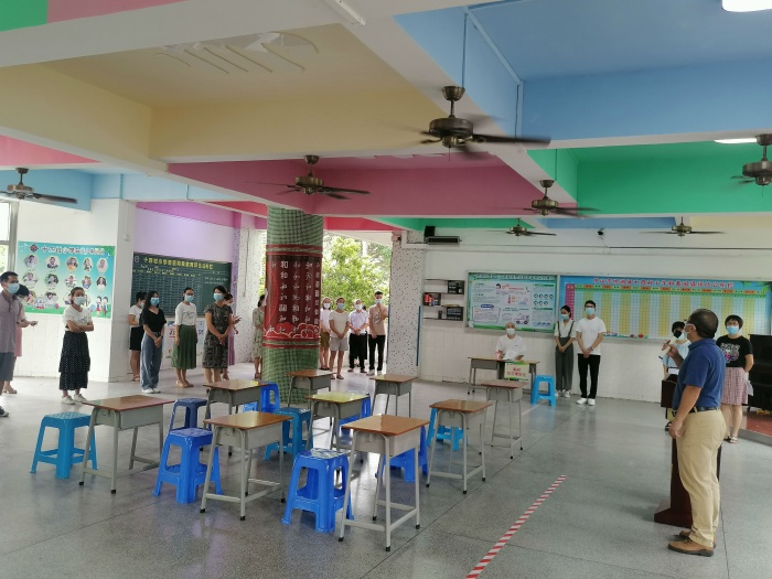 隨著2020年秋季新學(xué)期臨近,學(xué)校即將迎來師生回歸。為全面做好疫情防控工作,進(jìn)一步提高疫情防范和處置能力,熟練掌握學(xué)校疫情防控工作流程。2020年8月31日,坦洲鎮(zhèn)十四村小學(xué)在校內(nèi)舉行返?!靶鹿诜窝追揽亍敝攸c(diǎn)環(huán)節(jié)疫情防控演練。演練活動(dòng)由十四村小學(xué)負(fù)責(zé)衛(wèi)生工作的李秋嬋主席主持會(huì)議。當(dāng)日的演練包含學(xué)生錯(cuò)時(shí)入校、學(xué)生入班晨午檢及課中突發(fā)事件的應(yīng)急處置等三個(gè)環(huán)節(jié)。