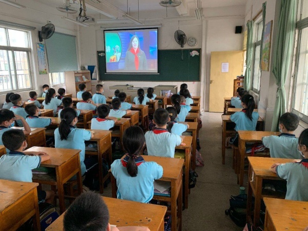 開(kāi)學(xué)典禮后,學(xué)校組織了全體返校師生,觀看了《復(fù)學(xué)第一課》?!稄?fù)學(xué)第一課》由火炬開(kāi)發(fā)區(qū)香暉園小學(xué)賴(lài)艷霞老師主講的班會(huì)課“天使歸來(lái),英雄開(kāi)講”。一幕幕畫(huà)面在眼前閃過(guò),同學(xué)們深受感動(dòng),紛紛致敬這些時(shí)代最感動(dòng)的人。兩位奔赴湖北抗擊疫情的醫(yī)護(hù)人員向大家介紹自己的親身經(jīng)歷,并深情地向同學(xué)們寄予自己期盼“少年強(qiáng),則國(guó)強(qiáng)?!敝嘏囵B(yǎng)學(xué)生的家國(guó)情懷、民族自豪、責(zé)任意識(shí)、擔(dān)當(dāng)意識(shí)。