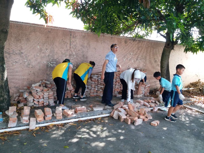 通過此次志愿服務(wù)活動(dòng),撿回了大量的磚頭,這些磚頭可以做成小板凳給小朋友坐在樹下看書;可以做成一個(gè)個(gè)不同形狀的小花壇,種上美麗的鮮花……家長帶領(lǐng)著孩子不僅為學(xué)校貢獻(xiàn)著自己的力量,還讓孩子們認(rèn)識(shí)到勞動(dòng)的不易和價(jià)值,志愿者們揮灑下的是汗水,常駐的是文明的身影,大家都在為創(chuàng)文,添磚加瓦!
