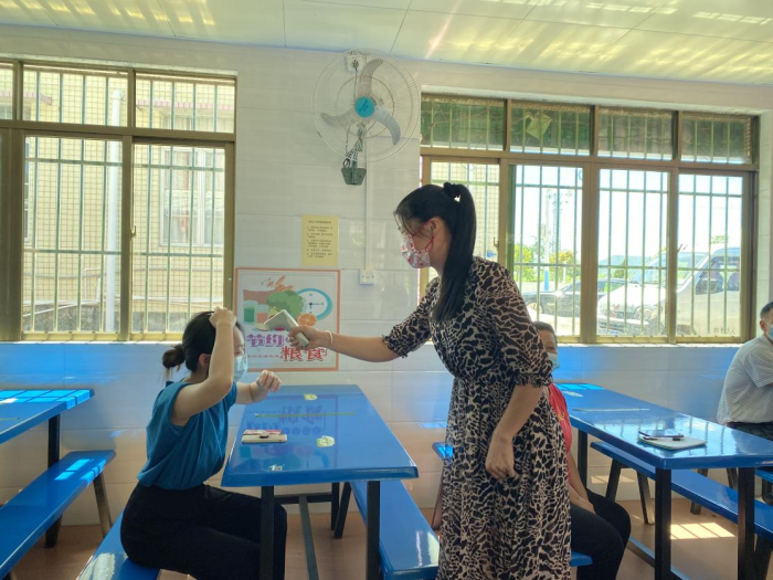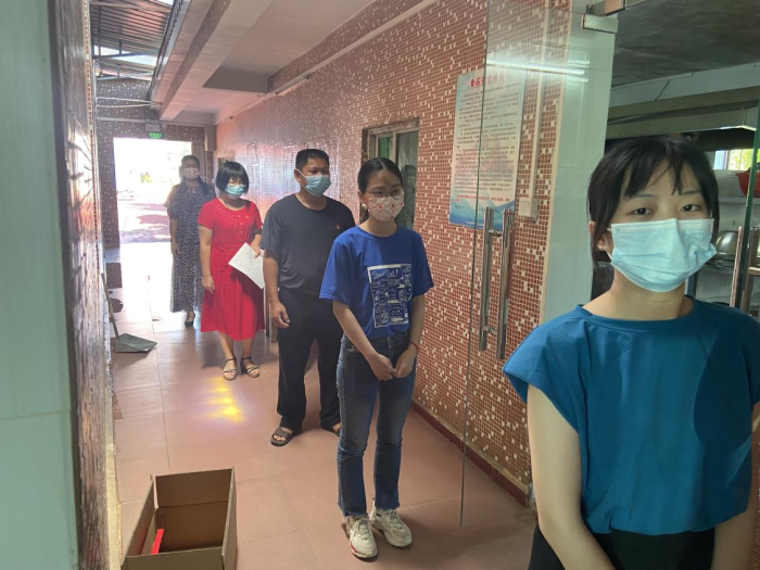 首先,模擬進(jìn)校晨檢工作。學(xué)生分批錯峰到校,返校學(xué)生間隔1米以上有序排隊等待值日老師測溫,體溫正常方可入校。學(xué)生出現(xiàn)發(fā)熱癥狀應(yīng)急處置,臨時觀測區(qū)處置,發(fā)現(xiàn)發(fā)熱癥狀,由校醫(yī)進(jìn)行復(fù)查以及健康咨詢,老師層級匯報演練等。