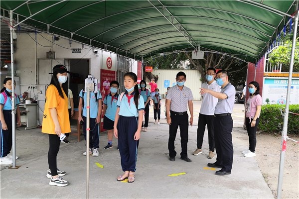 一大早,返校心情雀躍的學生按照學校提前下發(fā)的溫馨提示,錯峰來到學校門口,在老師及安保人員的指引下,有序并保持間隔地在學校門口進行掃臉測溫,順利進入學校。坦洲鎮(zhèn)黨委委員坦洲公安分局局長劉世堅、坦洲鎮(zhèn)教育事務指導中心專干張凱在旁邊耐心陪同,不時與裕洲小學校長郭金棠交流意見和建議,為學生重新適應校園生活提供了保障。