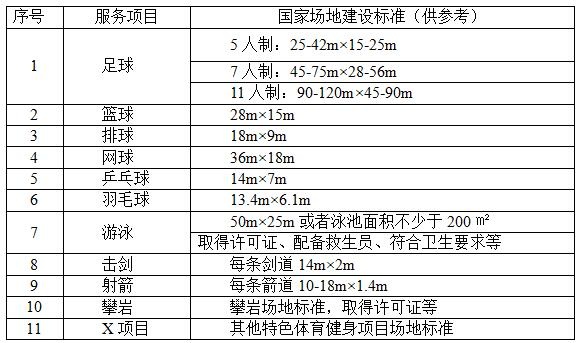 場(chǎng)地標(biāo)準(zhǔn)為參考標(biāo)準(zhǔn),除游泳、攀巖等項(xiàng)目需滿足國家和本市有關(guān)經(jīng)營許可等規(guī)定外,其他均為非硬性要求。中山市教育和體育局將參照國家場(chǎng)地建設(shè)標(biāo)準(zhǔn)、結(jié)合企業(yè)發(fā)展水平擇優(yōu)選定活動(dòng)場(chǎng)館(所)。