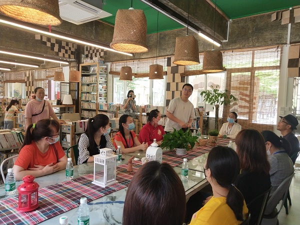 在4月23日——世界圖書日當(dāng)天,展覽工作組的領(lǐng)導(dǎo)和工作人員再次加班,精心準(zhǔn)備、熱情歡迎受邀的學(xué)生家長及社區(qū)居民的參觀。好幾位家長心情激動,提前半個小時就來到了學(xué)校。有的家長一走進閱覽室的大門,第一次看到學(xué)校有如此優(yōu)雅、溫馨的閱讀環(huán)境,禁不住發(fā)出“哇”的驚嘆聲。活動開始,先由本次展覽的策劃人也是學(xué)校繪本閱讀課教師李丹致歡迎辭,然后為參觀者進行了導(dǎo)賞。在隨后的參觀中,有的孩子指著自己的作品向家長介紹,家長開心地把雙眼湊到作品前仔細欣賞;有的孩子向家長介紹閱覽室的角角落落;有的孩子與家長一起分享圖書。參觀結(jié)束后,學(xué)校還舉行了參與人員的小型座談會,校長石磊、教務(wù)主任楊沙沙等就家長關(guān)心的兒童閱讀和教育問題與大家展開了真誠而熱烈的交流。有家長提問,孩子現(xiàn)在上二年級是比較愛讀繪本故事的,不過在要求其復(fù)核故事內(nèi)容的時候,常常抓不住重點,有點著急?,F(xiàn)場有家長回應(yīng),以自己二年級的孩子為例,在他小的時候經(jīng)常陪他一起閱讀、看繪本,現(xiàn)在也是愿意自己看書讀繪本的,不過并不要求他去專門復(fù)述內(nèi)容?,F(xiàn)在的閱讀積累是需要等到未來到中高年級才能體現(xiàn)出來的。繪本閱讀課李老師也補充到,從兒童閱讀的心理理論來說,一二年級的孩子還沒有達到復(fù)述重點的能力階段,不是語言輸出階段,還是輸入階段——小朋友需要大量的聽讀或自讀,能喜歡閱讀就很好了。還有的家長坦陳對于兒童閱讀和教育自己是沒有什么想法的,只是覺得只要孩子喜歡,家長就愿意支持,只希望孩子未來能生活幸福。石校長也表示非常理解家長的真實想法,感謝家長的支持,再次表示這次座談會就是希望聽到不同的聲音,希望家長可以真誠表達自己的想法;在思想的碰撞中增進理解,加強反思,不斷提升工作水平,服務(wù)兒童和家長。會后,家長們又在班主任的帶領(lǐng)下參觀了學(xué)校的美育特色教育四大工作室?;顒咏Y(jié)束后,有的家長表示要將家里另一個孩子也送來桂南學(xué)校讀書。