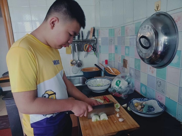 四至六年級(jí)開展了“我為家人做頓飯”活動(dòng)。隊(duì)員們?cè)诎职謰寢尩囊龑?dǎo)下,有模有樣地摘菜、炒菜、包餃子……隊(duì)員們通過做飯,不但解鎖了新的生活小技能,還提高了動(dòng)手能力,體驗(yàn)了勞動(dòng)的快樂。
