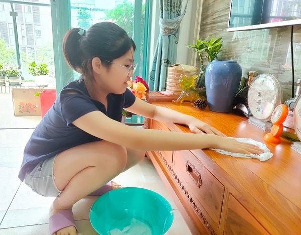 勤勞紅領(lǐng)巾,各顯其能。同學(xué)們不僅能做到自己的事情自己做,還學(xué)會(huì)幫助家長做一件力所能及的家務(wù)。“五一”假期中,同學(xué)們洗襪子、疊被、掃地、洗碗、蒸米飯,學(xué)會(huì)做一道菜,和爸爸媽媽一起進(jìn)行一次家庭衛(wèi)生大掃除……同學(xué)們?cè)趯?shí)踐中體驗(yàn)勞動(dòng)的甘苦,享受勞動(dòng)帶來的快樂。