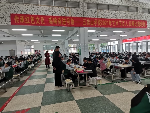 為了加強(qiáng)校園文化建設(shè),豐富同學(xué)們的課余文化生活,培養(yǎng)學(xué)生寫規(guī)范字的習(xí)慣,發(fā)掘?qū)W生的繪畫潛能,提高學(xué)生的審美和鑒賞能力,12月21日,五桂山學(xué)校舉辦了以“傳承紅色文化,唱響奮進(jìn)號(hào)角”為主題校園藝術(shù)節(jié)書畫比賽。近300學(xué)生現(xiàn)場(chǎng)進(jìn)行軟筆書法、硬筆書法和繪畫比賽。