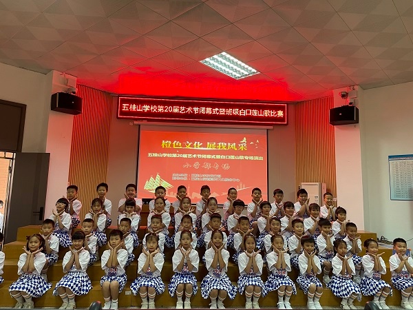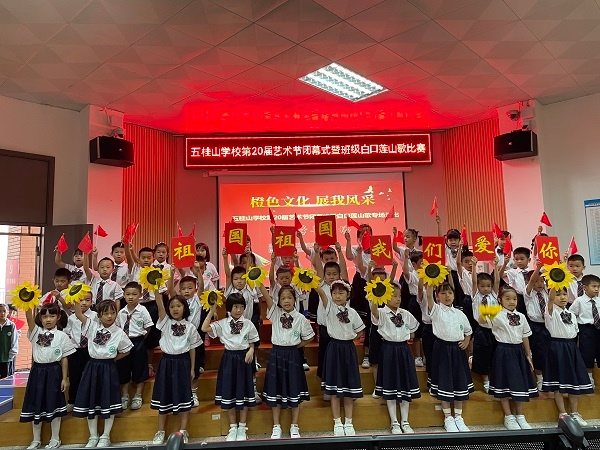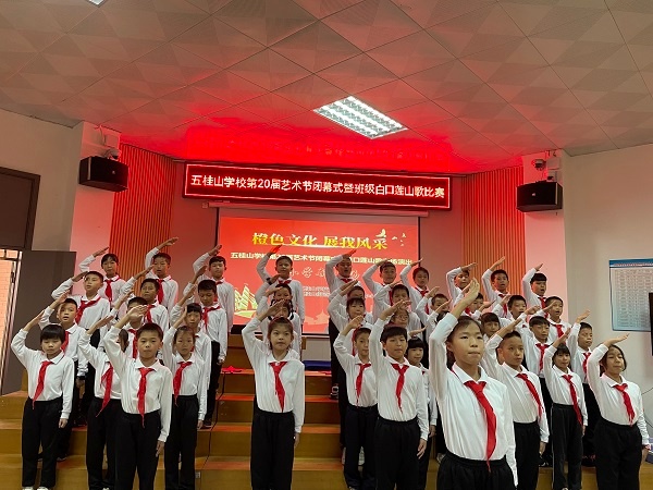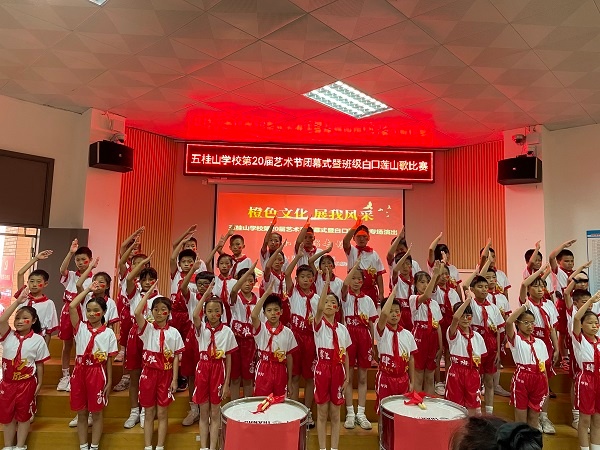 為弘揚(yáng)愛國主義精神,豐富學(xué)生的校園文化生活,五桂山學(xué)校圍繞“五色教育”之橙色文化教育,開展了為期一個(gè)月的第20屆藝術(shù)節(jié)系列活動(dòng)。11月4日上午,五桂山學(xué)校第20屆藝術(shù)節(jié)閉幕式暨白口蓮山歌專場(chǎng)活動(dòng)在小學(xué)部階梯室舉行,活動(dòng)以“歌頌偉大祖國,肩負(fù)神圣使命”為主題開展班級(jí)紅歌比賽。
