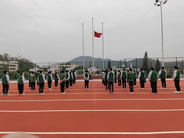 12月13日,是祭奠南京大屠殺30萬死難同胞的特殊日子,被定為中華人民共和國國家公祭日。在此具有特殊含義的日子中,五桂山學(xué)校開展了一場特別的愛國主義教育——國家公祭日祭奠活動。國旗隊(duì)隊(duì)員邁著標(biāo)準(zhǔn)的慢正步,在所有人的注目禮中,將國旗緩緩升到旗桿頂端,在莊嚴(yán)的降半旗口令下緩緩降下三分之一。