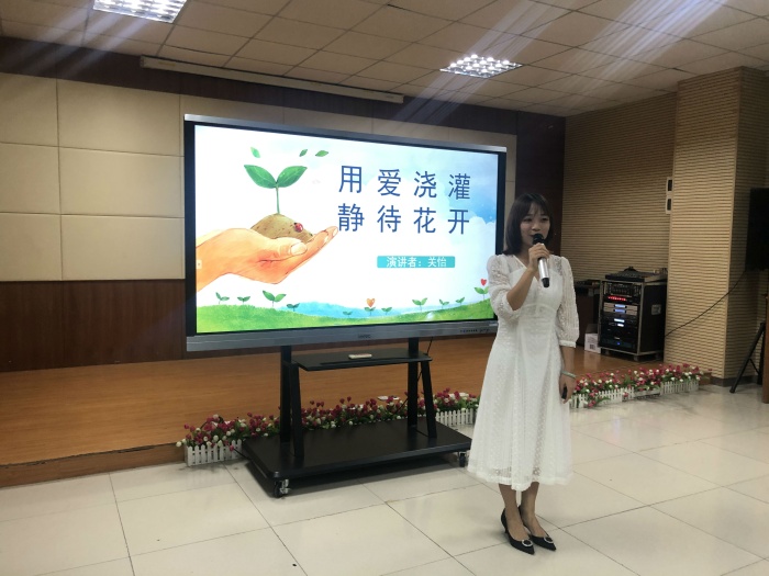 當(dāng)天下午,報告廳內(nèi)熱鬧非凡,不僅匯聚了全校教職工的眼球,還吸引了該校中高年級熱愛演講、尊師好學(xué)的孩子參與。活動開始時主持人彭宇津主任對比賽規(guī)則進行了簡單介紹,明確此次演講比賽使用普通話脫稿演講,儀態(tài)大方自然;演講時間為5-8分鐘,最后評選出一二等獎若干名。來自該校九大科組的九位老師分別從不同的角度對新時代的師德展開詮釋,講述自己與教育、教師和學(xué)生、教師與教師間不一樣的精彩與感動。以“用愛澆灌、靜待花開”為題開場的是來自數(shù)學(xué)科組的關(guān)怡老師。她在講述自己和一位插班生之間的故事演繹了“沒有愛便沒有教育”的教育理念。以“靜待花開、向陽而生”的滿心期待告訴師生們“教育就是如此簡單,就是用生命影響生命,用生命影響生命的”。離開病床上的兒子的張潔舒老師用行動與成長的一個個小故事講述了自己實踐的優(yōu)良師德。接著劉慧老師從完美老師開始講述,把內(nèi)心對學(xué)生的愛與關(guān)心概括為愛生、正己、育人三方面。英語科的胡杜鵑老師引經(jīng)據(jù)典地從道德、底線、素質(zhì)及信念四方面詮釋了何為“師德”。她回顧過往迎來送往的點滴,高度概括出高尚的師德應(yīng)為“心法優(yōu)于兵法,做一名暖心的教師”。初到昌平的黃孟金老師與李夢云老師則從自己對初為人師的點滴感受進行演講,樸實中現(xiàn)初心。陳思穎老師則以“猜猜他是誰”的互動為師生們呈現(xiàn)了一個個師德高尚的普通教師形象,既有上了年紀還帶頭掏水溝的賴老師,也有年輕卻孜孜不倦、不分寒暑假開展籃球訓(xùn)練的梁老師。師生們在一個個熟悉且和藹可親的形象中感受到了昌平人為教育而萌生的一團和氣。其后,作為體育科的趙青杰老師用平實的語言回顧了自己初為人師時,從通過一個小事件幫助一個外來子弟家庭改變教育方法時的感觸,講述了自己永葆內(nèi)心的教育初心。最后一位孔桂花老師則以從另一個高度,以“根向下心向上,和而不同昌平人!”為題講述了自己的成長與學(xué)校優(yōu)秀教師的高尚品德。整場演講活動異彩紛呈,每位選手都以自己獨特的感受與呈現(xiàn)方式,以平實而又富有感染力的語言打動著在場的每一個人,會場掌聲雷鳴般不絕。