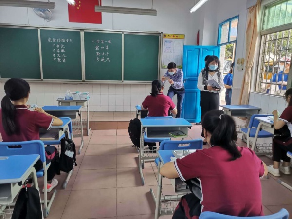 此次演練,圍繞環(huán)境消殺、師生的學校學習、工作以及學校生活,從師生進校門、課室上課、就餐情況、午休、放學等常規(guī)情景以及發(fā)熱學生就診過程、學生突發(fā)疾病等情景的應急處置進行細致規(guī)范科學的防疫模擬,為初三學子安全復學,打下嚴實的安全基礎。